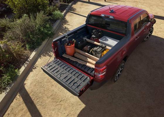 The Maverick comes exclusively as a four-door, five-passenger crew cab with a 4.5-foot bed and plenty of innovative cabin storage options. Ford offers a wide range of accessories, such as power outlets in the bed and tie-down cleats to keep loads secure. The compact truck can haul up to 1,500 pounds of cargo and tow up to 4,000 pounds when properly equipped.