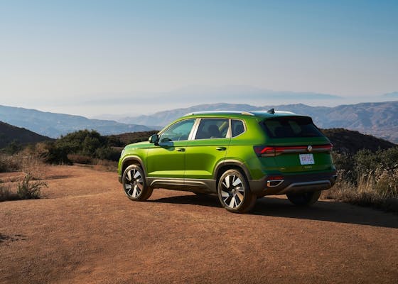 The surprisingly spacious 2025 Volkswagen Taos is an excellent choice for buyers who want a sharply styled small crossover with family-friendly interior space and a refined driving experience.
