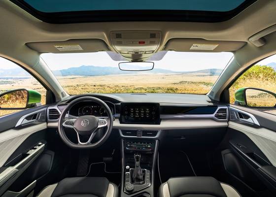 Cargo space behind the second-row seats is among the most generous in the class as well. The Taos has 27.9 cubic feet of luggage space in front-wheel-drive versions, a figure that drops by 3 cubic feet in all-wheel-drive models. In our real-world testing, we found that among subcompact SUVs, only the Ford Bronco Sport can top its cargo space behind the back seat. The Baby Bronco is awfully expensive, though, so the Taos is almost best in class by default.