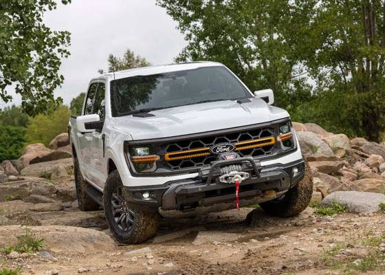 Ford has six engine options available on the F-150, and for 2025, the 2.7-liter turbocharged V6 rated at 325 horsepower and 400 pound-feet of torque is the base engine, depending on body style and wheelbase. More grunt can be found from the 5.0-liter V8 or 3.5-liter twin-turbocharged V6, both rated at 400 hp. However, the turbo V6 not only has a higher torque rating (500 lb-ft vs. 410 lb-ft), but it also delivers more torque at lower engine speeds. A high-output version of the 3.5-liter V6 delivers 450 hp and 510 lb-ft of torque, found exclusively in the Raptor. There's also a 3.5-liter V6 hybrid drivetrain, which has the best all-around fuel efficiency and is rated at an impressive 430 hp and 570 lb-ft. The highest performance is reserved for the Raptor R, which boasts a 5.2-liter supercharged V8 that will put out more than 700 hp.