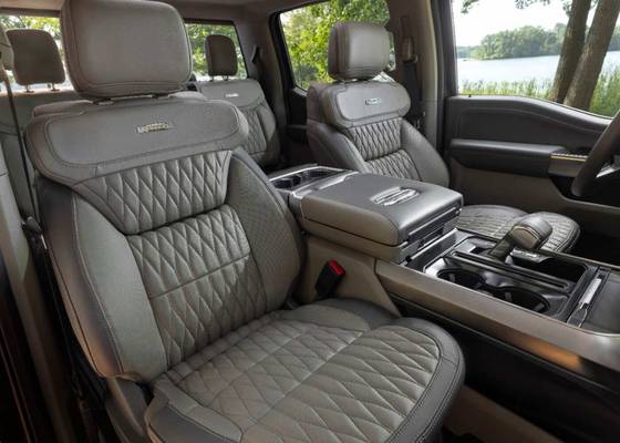 The F-150 is spacious and comfortable, and has a huge center console storage area. An optional trick gear shifter folds down into the center console to create a flat workspace in front of the seat bottom. Fully reclining front seats are available with a massage feature. Overall, the F-150's cabin is versatile, durable, and attractive. The Ram 1500 is the only full-size pickup that can match the F-150's interior when it comes to comfort and quality. The Chevrolet Silverado 1500 and Toyota Tundra aren't as luxurious, although the latest Tundra is nicely styled.