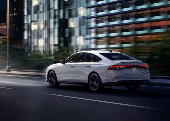 The range-topping Hybrid Touring trim costs $40,395 and is the most luxurious and tech-forward Accord. It has heated and ventilated front seats, heated rear outboard seats, a heated steering wheel, a premium 12-speaker Bose audio system, a Wi-Fi hotspot, and a head-up display. The Touring also features built-in Google, which includes apps such as Google Assistant, Google Maps, and more on Google Play, plus a three-year unlimited data plan. Machined Berlina Black 19-inch wheels are standard.