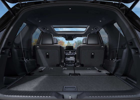The Pilot’s rear cargo area has up to 22.4 cubic feet of storage space with the third-row seat still in place. The Kia Telluride has 21 cubic feet and the Volkswagen Atlas has 20.6 cubic feet. With all rear seats folded down, the Pilot's capacity expands to 113.7 cubic feet in seven-passenger TrailSport models and 112.4 cubic feet in other trim levels. The Telluride maxes out at 87 cubic feet.