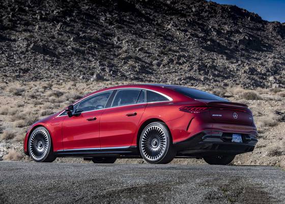 The EQS battery can be charged from 10 to 100% in just over 11 hours at home with a 240-volt Level 2 charger. On the road, 400-volt, 110kW DC chargers available at fast-charge stations will take the EQS from 10 to 80% charge in 31 minutes. The MercedesMe charge payment system is built into the EQS and is compatible with 60,000 chargers at Chargepoint, Electrify America, and EVgo stations. Mercedes is offering new EQS owners two years of free 30-minute DC charging.