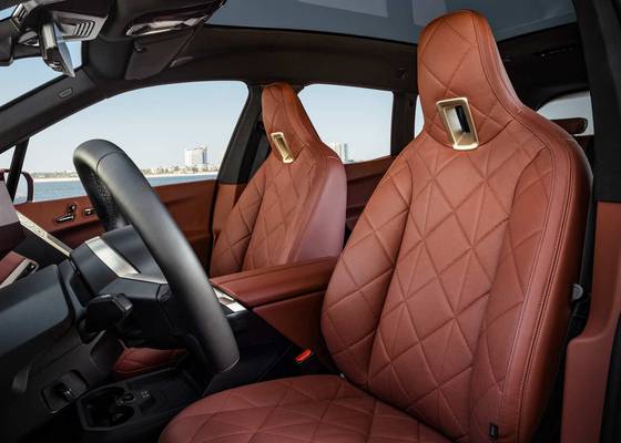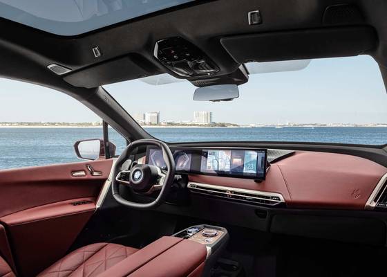 Dual USB ports in the back of each front headrest offer plenty of charge points for devices, while a wireless device charger, Wi-Fi hotspot, and premium Harman Kardon audio system come standard. Adding a little zest to a nearly silent ride, the iX can play artificial road and engine sounds designed by renowned film composer Hans Zimmer inside the cabin.